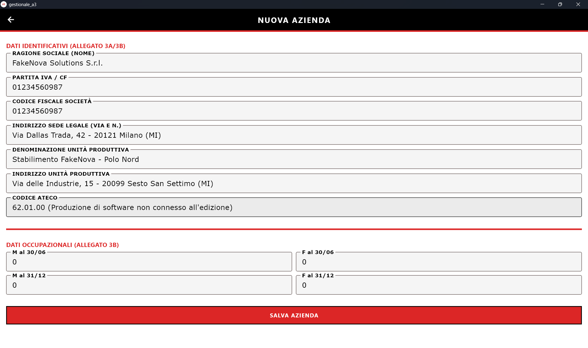Definizione dello schema relazionale per l'archiviazione conforme agli Allegati 3A e 3B. Gestione automatizzata di Unità Produttive e Codici ATECO.
